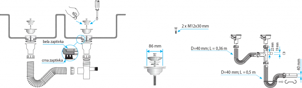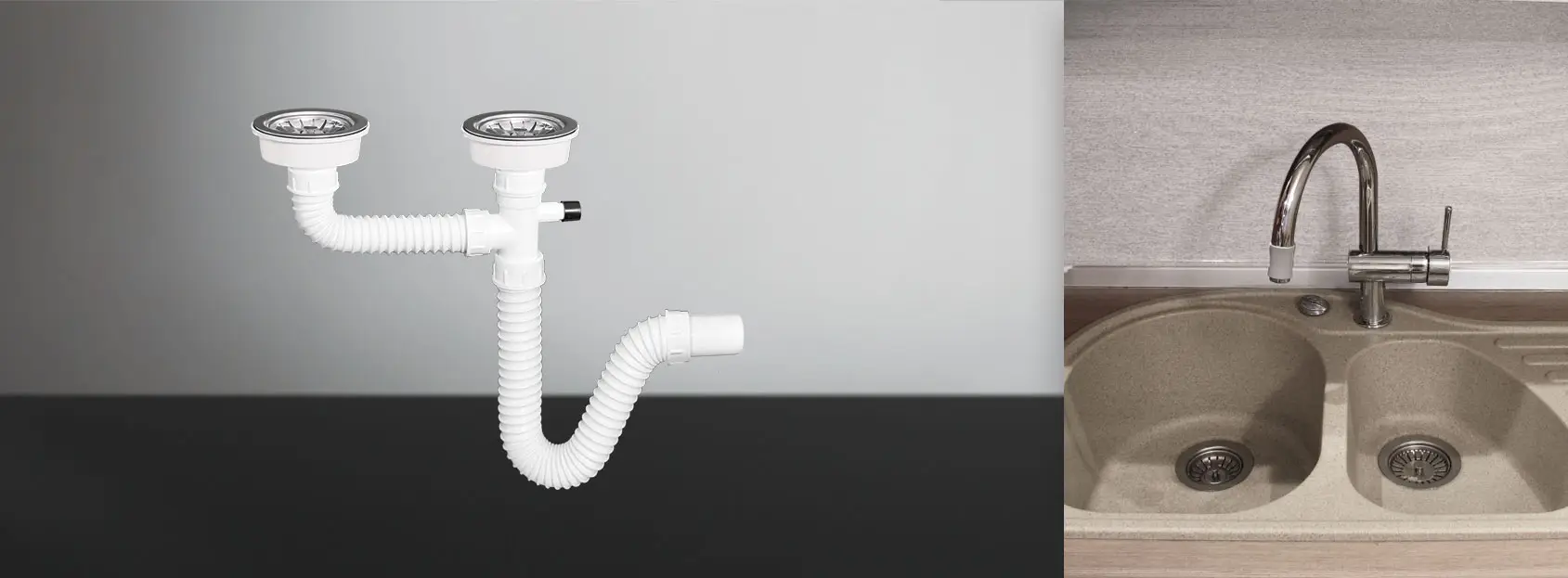 - Name: Flexible granite kitchen sink siphon with a dishwasher connection double bowl