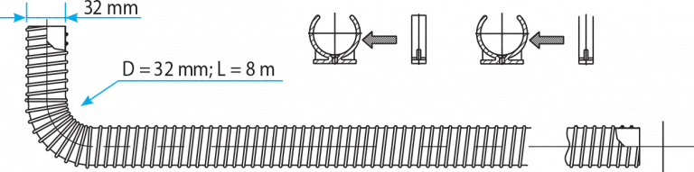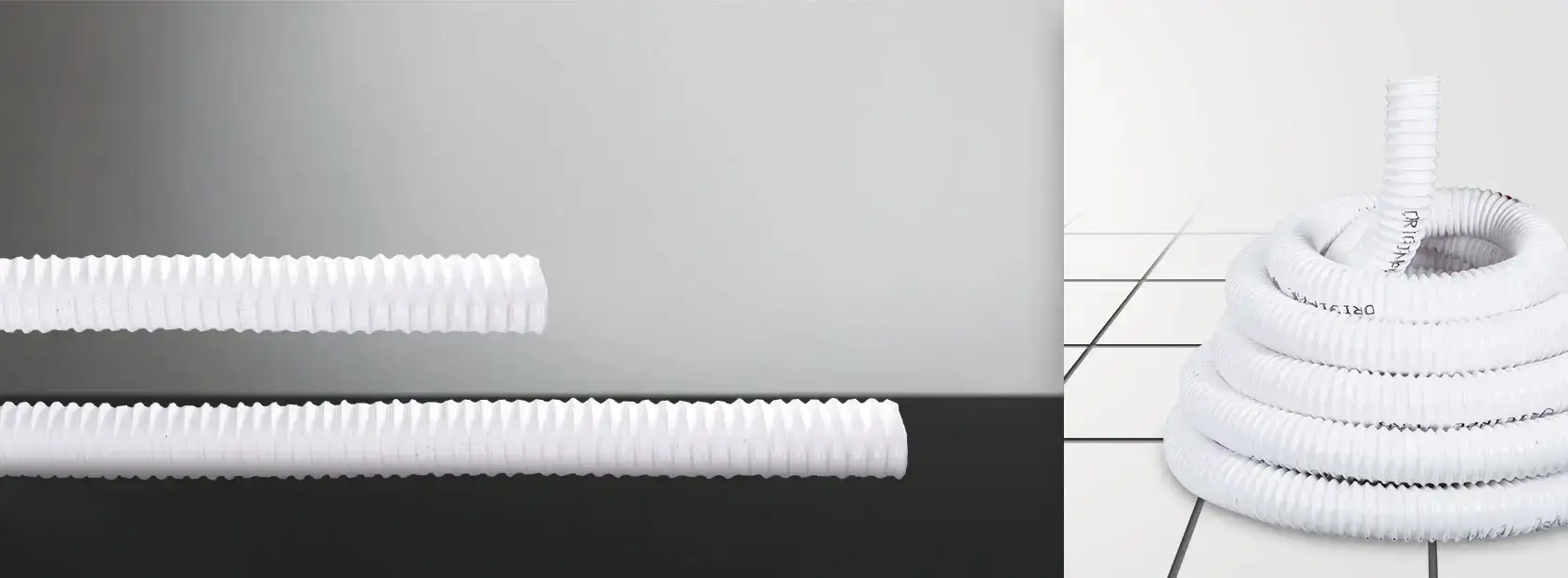 Flexible pipe D=40 mm with holders For connecting water tank pipes to the toilet bowl. Main characteristics: Flexible PVC pipe diameter 40mm, length 8 m, with smooth interior and spiral wound corrugated exterior. Holders DESCRIPTION : Name: Flexible pipe D=40 mm with holders Ident: S00126 Appearance: Classic Connector: Single bowl Overflow: No Diameter: 40mm Pallet size: 800×1200 mm Barcode: 8605008301983 Installation Drain connection for toilet bowl simplon excentric 200mm Flexiblekitchen sink siphon with an overflow drain and dishwasher connection double bowl Flexible kitchen sink siphon with overflow and dishwasher connection double bowl Flexiblesink siphon Ø90 with overflow